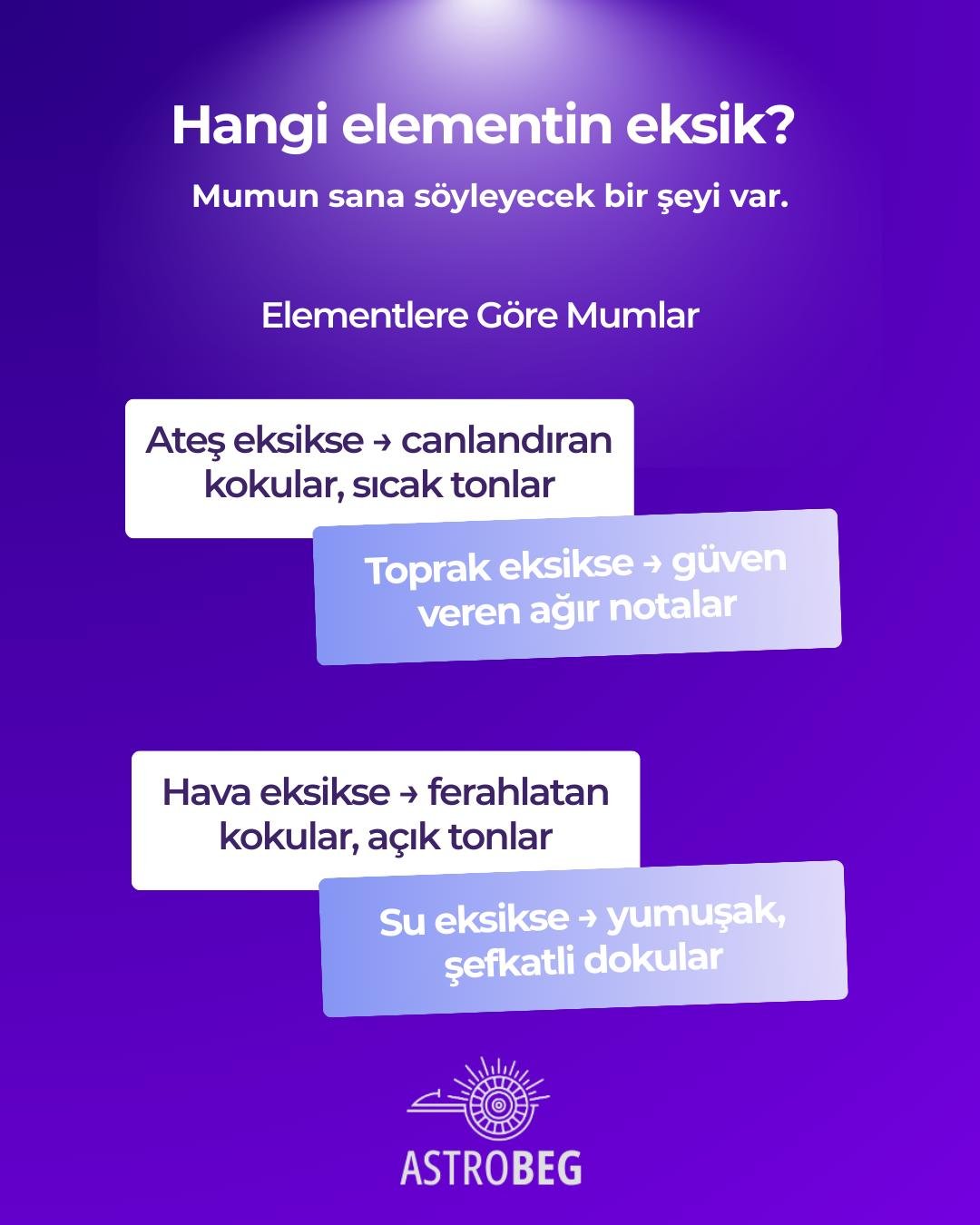 • Doğum haritanızdaki eksik elementlere göre renk & koku önerisi